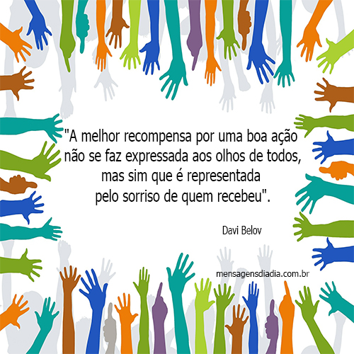 “A melhor recompensa por uma boa ação não se faz expressada aos olhos de todos, mas sim que é representada pelo sorriso de quem recebeu”.