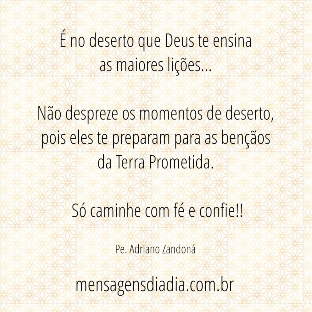 É no deserto que Deus te ensina as maiores lições… Não despreze os momentos de deserto, pois eles te preparam para as bençãos da terra prometida. Só caminhe com fé e confie!!