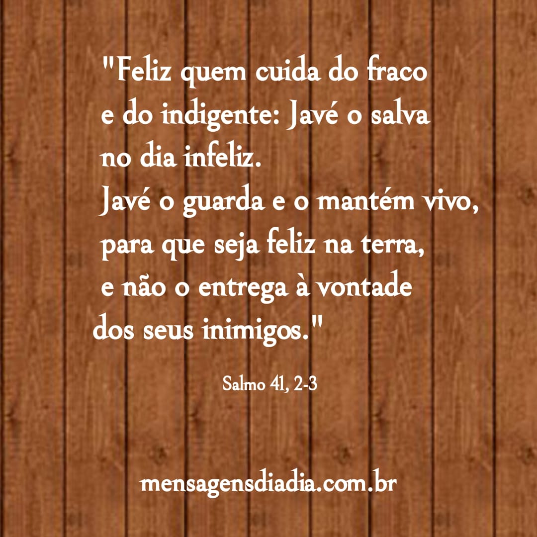 “Feliz quem cuida do fraco e do indigente: Javé o salva no dia infeliz. Javé o guarda e o mantém vivo, para que seja feliz