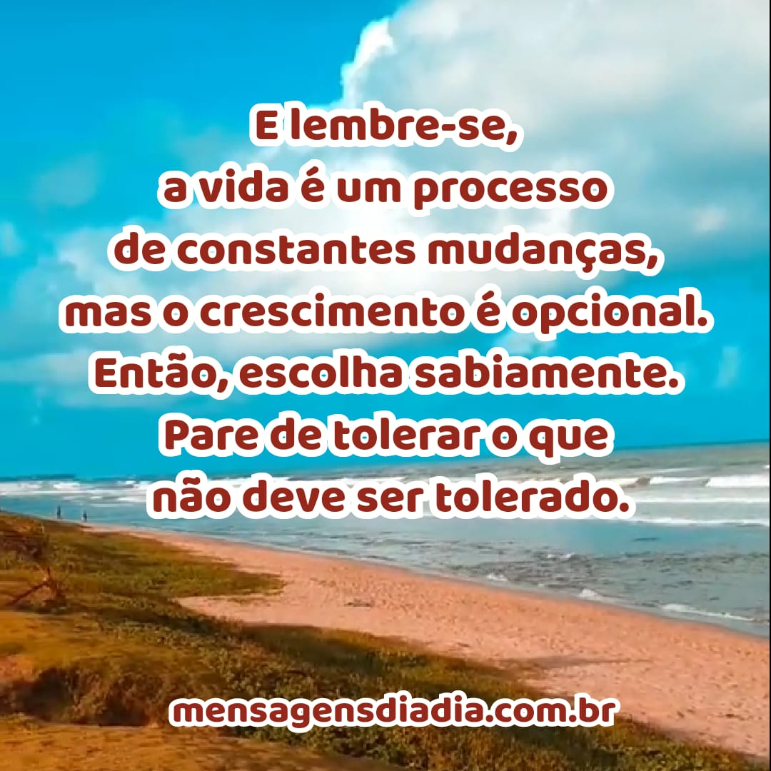 E lembre-se a vida é um processo de constantes mudanças, mas o crescimento é opcional. Então escolha sabiamente. Pare de tolerar o que não deve