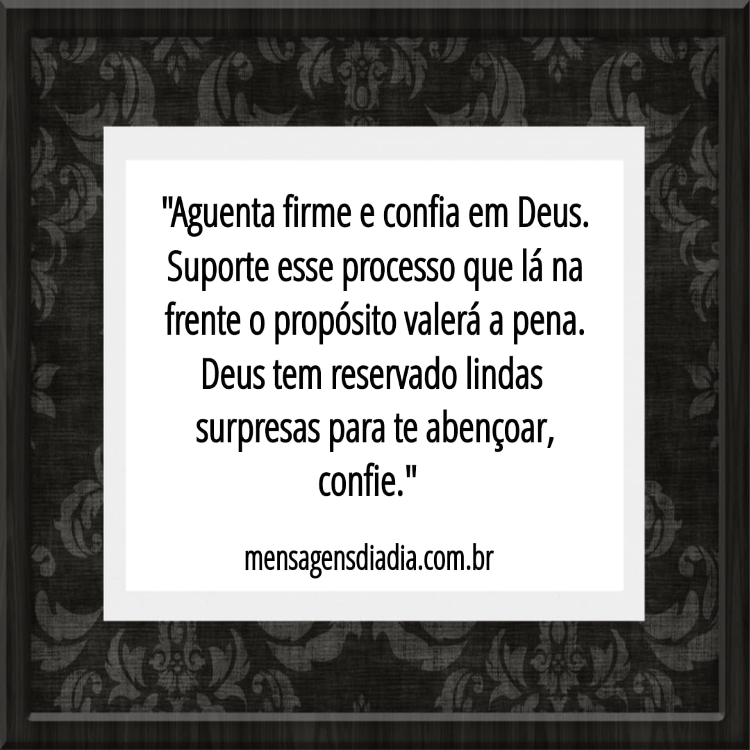 “Aguenta firme e confia em Deus. Suporte esse processo que lá na frente o propósito valerá a pena. Deus tem reservado lindas surpresas para te