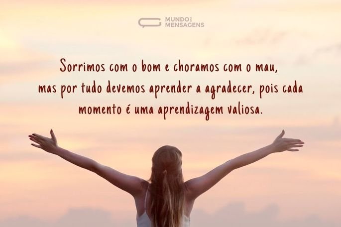 Sorrimos com o bom e choramos com o mau, mas por tudo devemos aprender a agradecer, pois cada momento é uma aprendizagem valiosa.