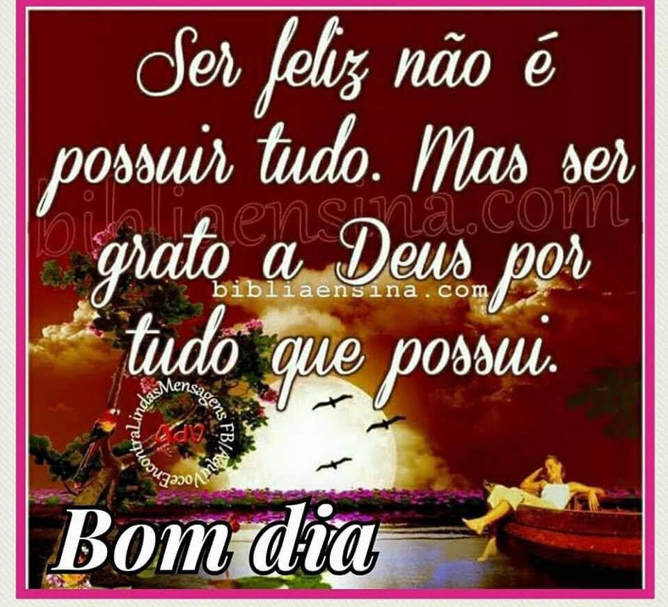 Ser feliz não é possuir tudo. Mas ser grato a Deus por tudo que possui. Bom dia!