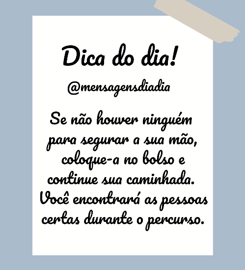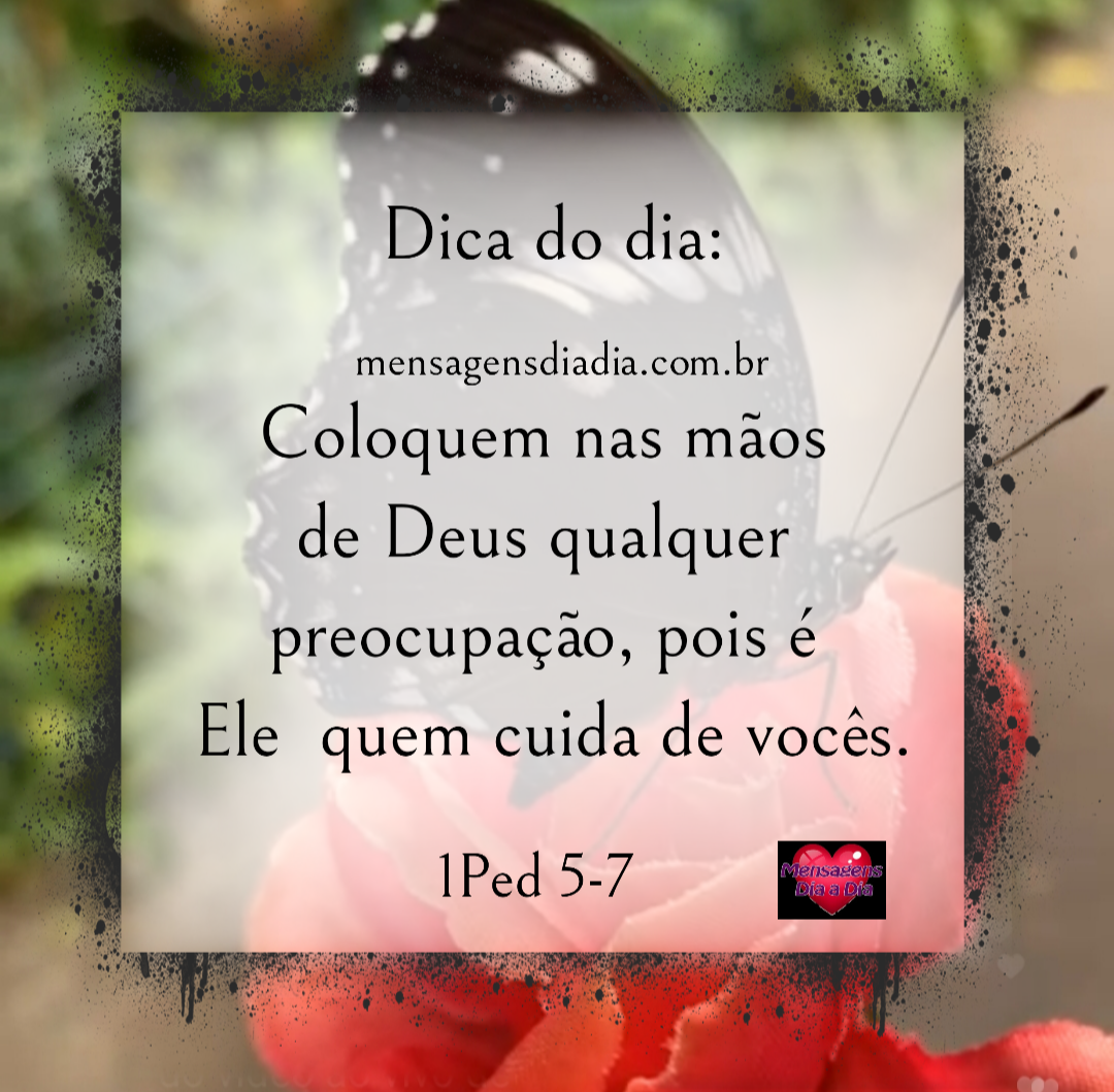 Dica do dia: Coloquem nas mãosde Deus qualquerpreocupação, pois éEle quem cuida de vocês. 1 Ped 5-7