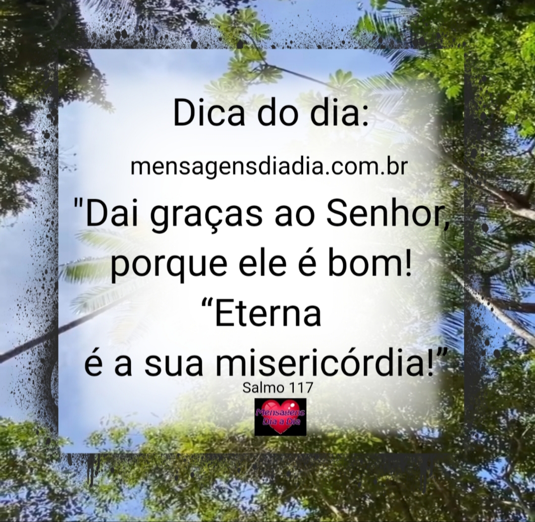Dica do dia: “Dai graças ao Senhor,porque ele é bom!“Eternaé a sua misericórdia!” Salmo 117