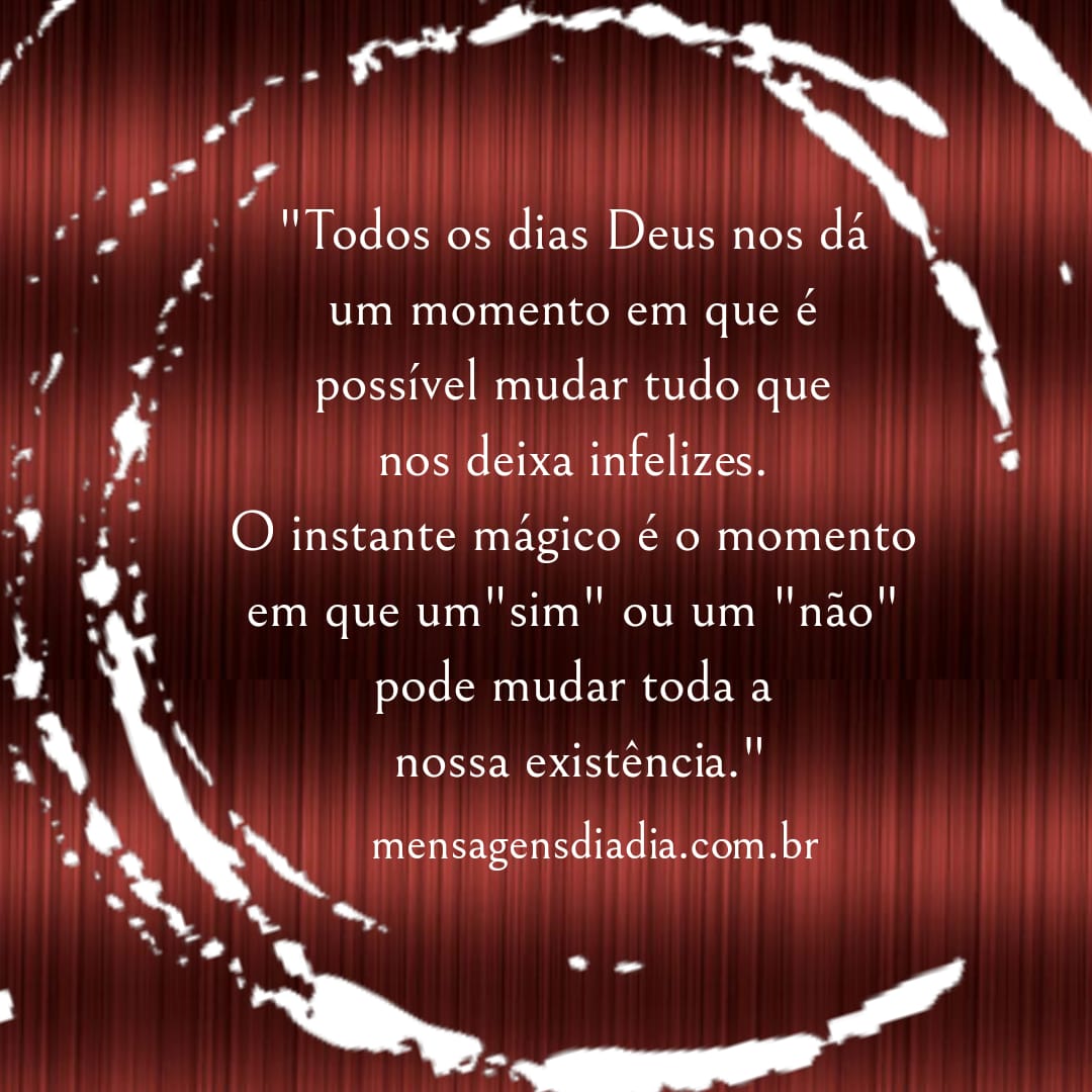 “Todos os dias Deus nos dá um momento em que é possível mudar tudo que nos deixa infelizes. O instante mágico é o momento em