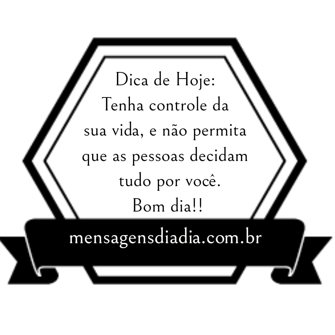 Dica do hoje: Tenha controle da sua vida, e não permita que as pessoas decidam tudo por você. Bom dia!!