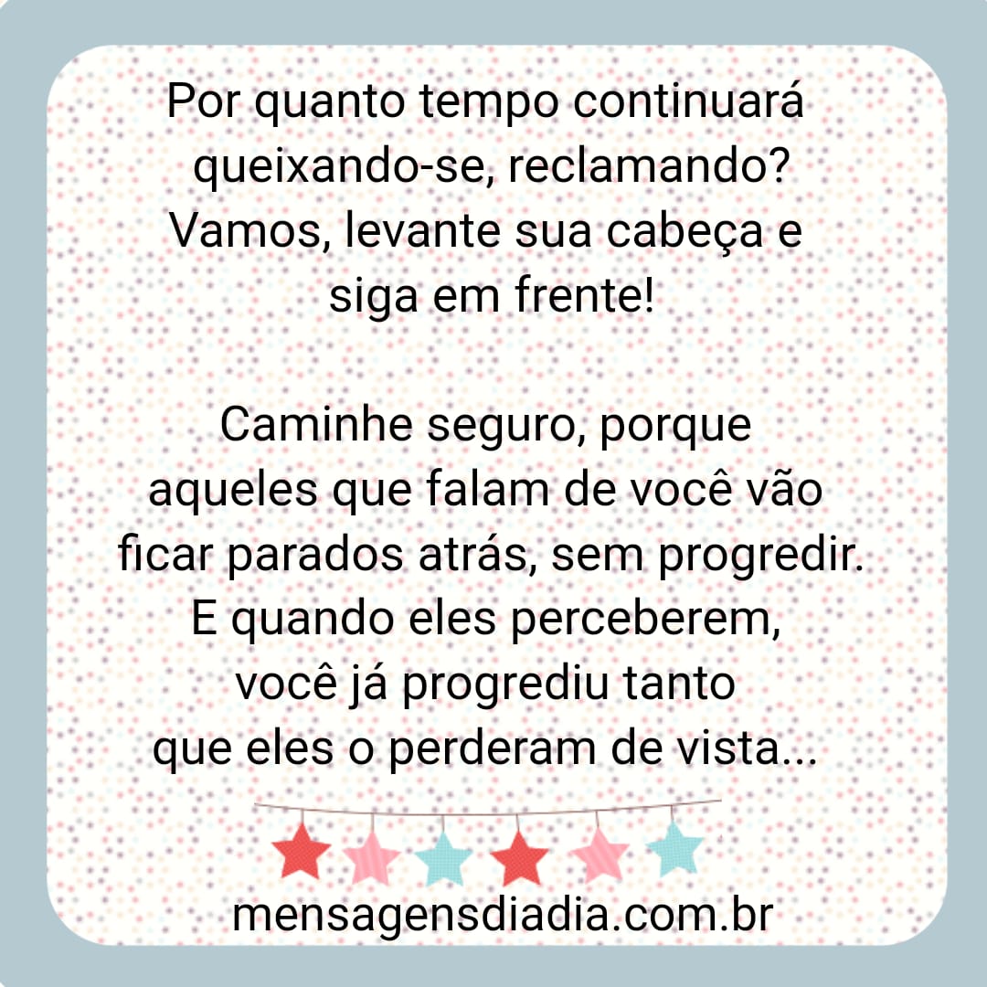 Por quanto tempo continuará queixando-se , reclamando? Vamos, levante sua cabeça e siga em frente! Caminhe seguro, porque aqueles que falam de você vão ficar