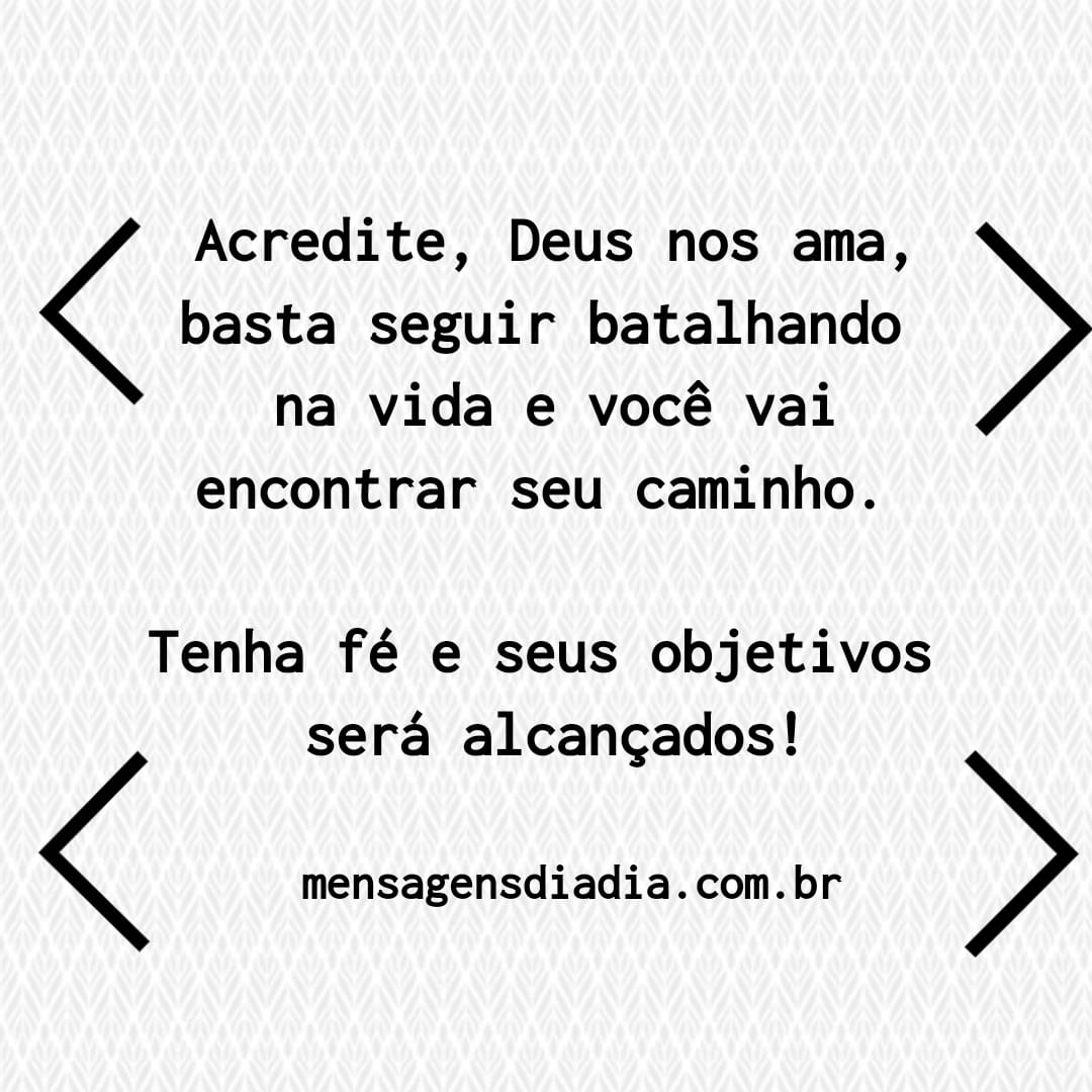 Acredite, Deus nos ama, basta seguir batalhando na vida e você vai encontrar o seu caminho. Tenha fé e seus objetivos serão alcançados.