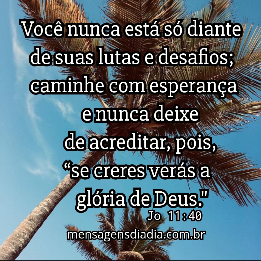 Você nunca está só diante de suas e desafios; caminhe com esperança e nunca deixe de acreditar, pois, “se creres verás a glória de Deus.”