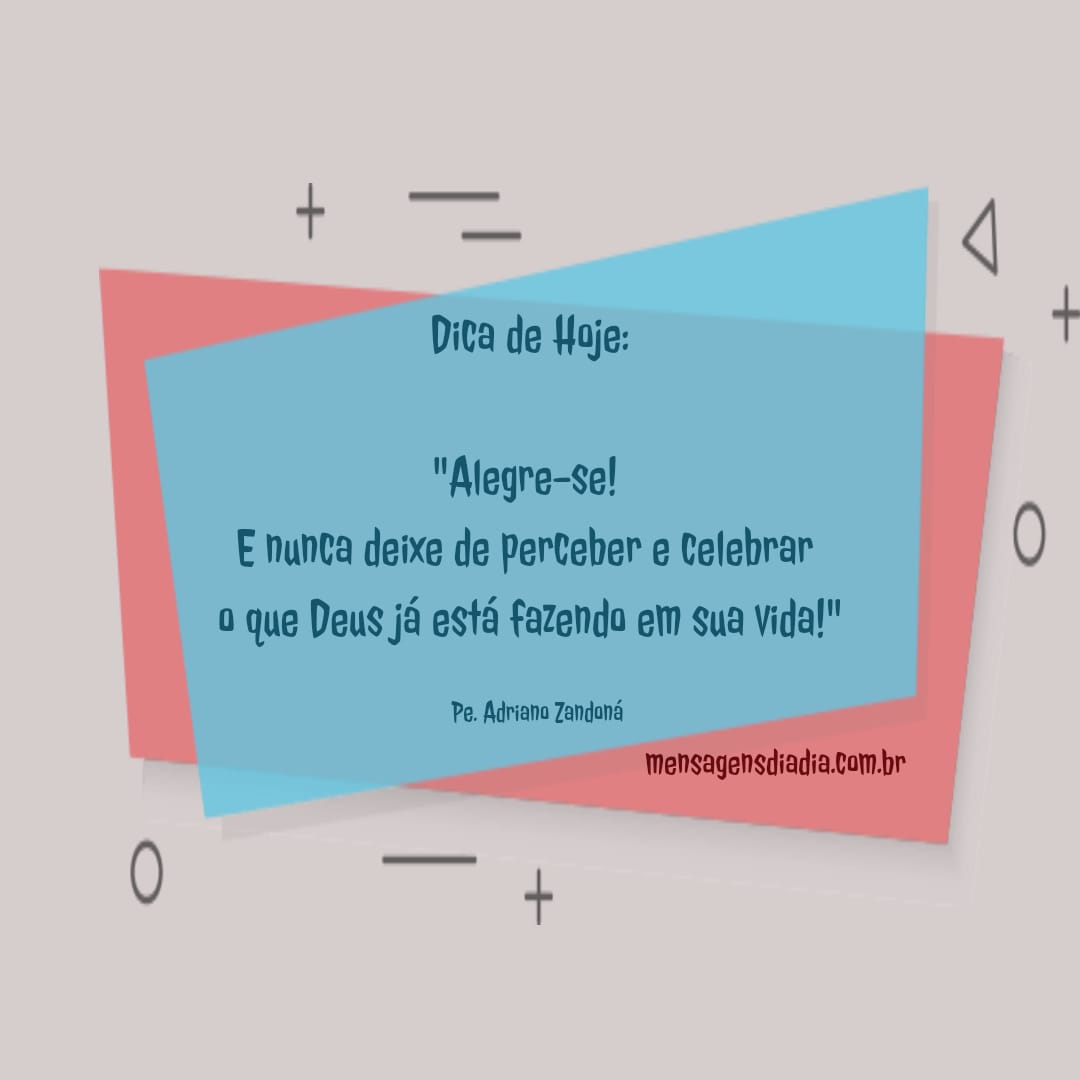 Dica de hoje: “Alegre-se! E nunca deixe de perceber e celebrar o que Deus já está fazendo em sua vida.” Pe. Adriano Zandoná