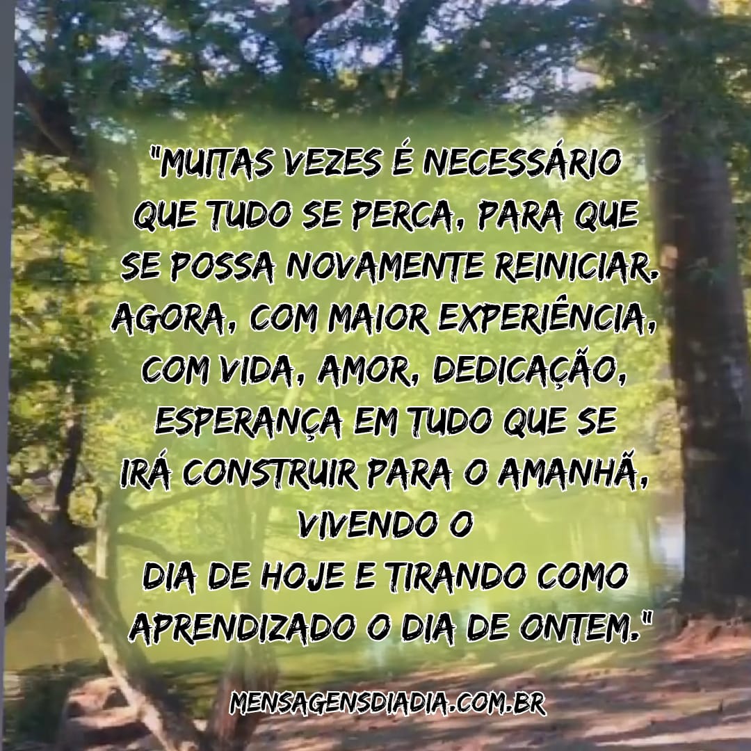 “Muitas vezes é necessário que tudo se perca. Para que se possa novamente reiniciar. Agora, com maior experiência, com vida, amor,dedicação, esperança em tudo que