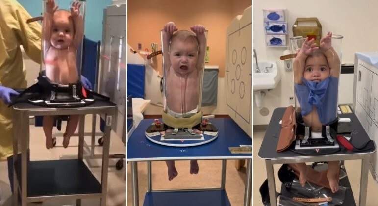 O Pigg-O-Stat, como é conhecido, serve como imobilizador, além de evitar que o paciente mirim seja exposto à radiação Oh, gente! Parecendo um liquidificador, vídeos