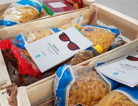 Entretenimento ou uma metáfora de que os livros também são alimentos? Penso que os dois. Definitivamente, uma linda atitude para a saúde mental e cultural