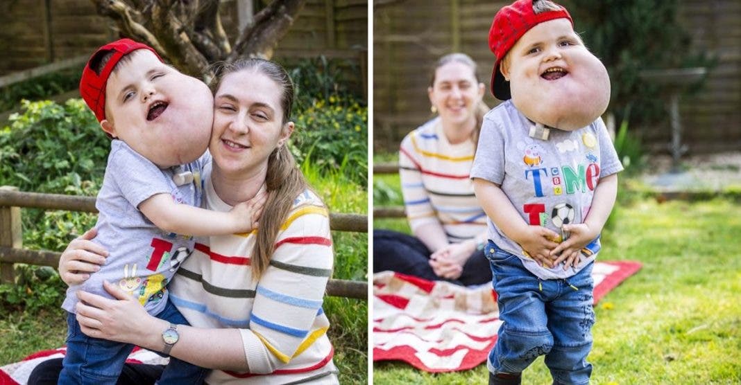 O pequeno Alex Grabowski, de 4 anos, nasceu com higromas císticos, que são a soma de vários cistos cheios de líquido na face e nas