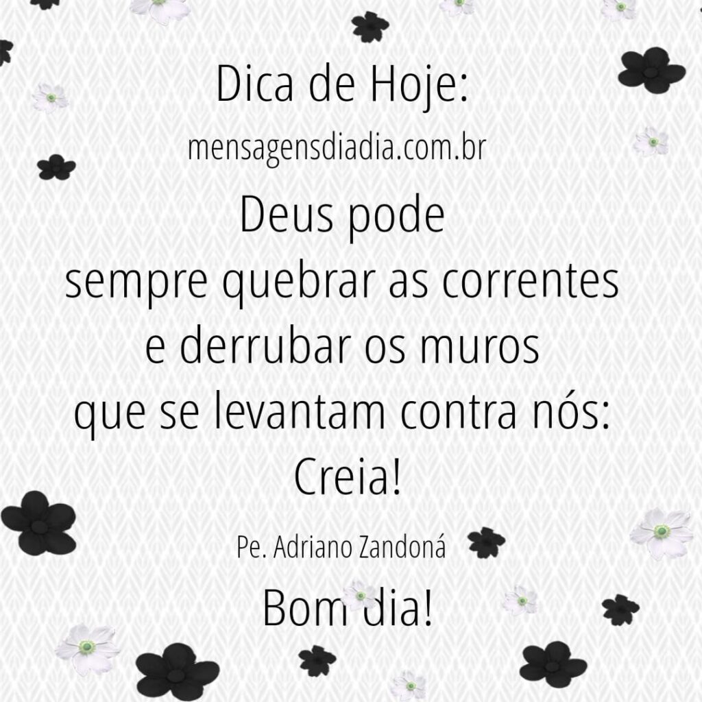 Dica de Hoje: Deus pode sempre quebrar as correntes e derrubar os muros que se levantam contra nós: creia! Bom dia!