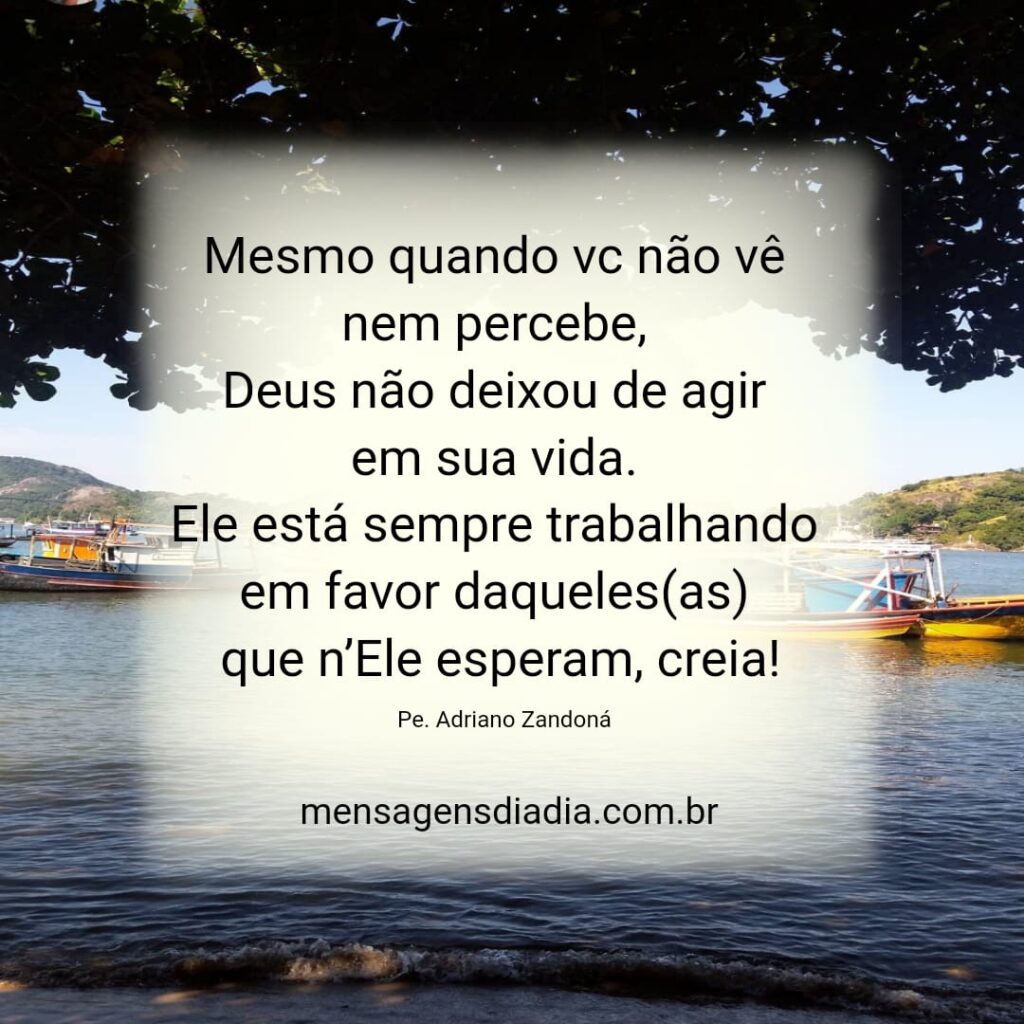Mesmo quando você não vê nem percebe, Deus não deixou de agir em sua vida. Ele está trabalhando em favor daqueles (as) que n’ Ele esperam, creia!