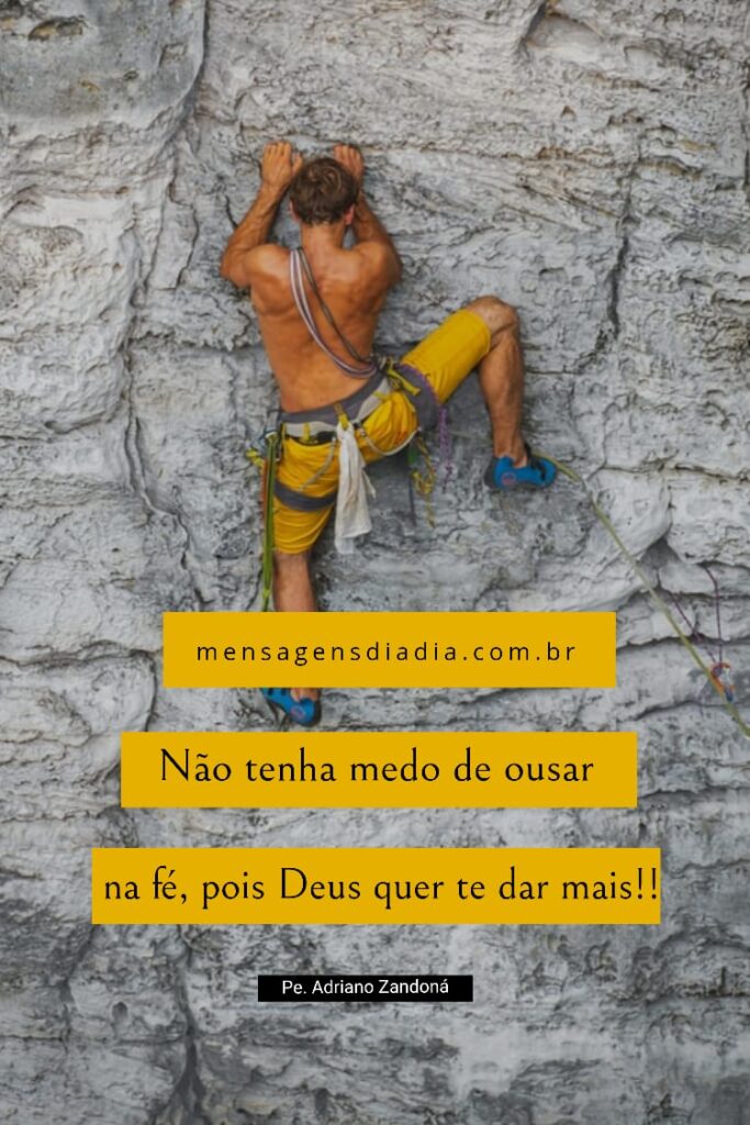 Não tenha medo de ousar na fé, pois Deus quer te dar mais!! É tão fácil falar de paciência, não é mesmo? Mas quando mais precisamos dela, onde está? Quando Deus pede para sermos pacientes e esperarmos, só vai funcionar se esperarmos n’Ele, se confiarmos n’Ele para resolver a situação. Mas além de paciência você precisa de coragem. Não vale “confiar em Deus” e depois tentar fugir dos seus problemas. Esperar com coragem significa que podemos enfrentar com fé qualquer situação, sabendo que Deus está no controle.