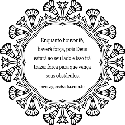 Enquanto houver fé, haverá força, pois Deus estará ao seu lado e isso irá trazer força para que vença seus obstáculos.