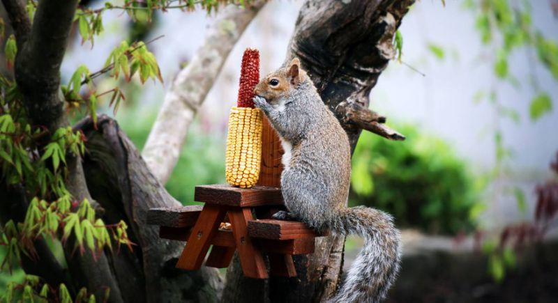 Homem constrói ‘mesinhas’ para esquilos se alimentarem e viraliza