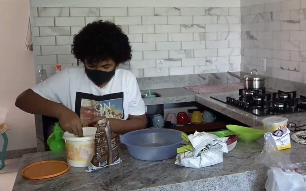 Já o também estudante Ângelo Teixeira, de 12 anos, irmão de Erick, resolveu acabar com o tédio desenvolvendo a habilidade culinária. “Eu já fazia antes, só que na quarentena eu comecei a fazer mais ainda. Antes eu não tinha tanto tempo, porque eu tinha dever de casa, escola”, destacou.