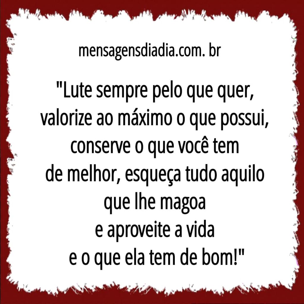 “Lute sempre pelo que quer, valorize ao máximo o que possui, conserve o que você tem de melhor, esqueça tudo aquilo que lhe magoa e aproveite a vida e o que ela tem de bom!
