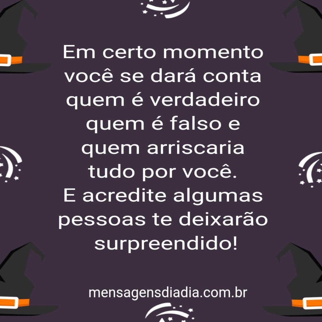 Em certo momento você se dará conta quem é verdadeiro, quem é falso e quem arriscaria tudo por você. E acredite algumas pessoas te deixarão surpreendido!