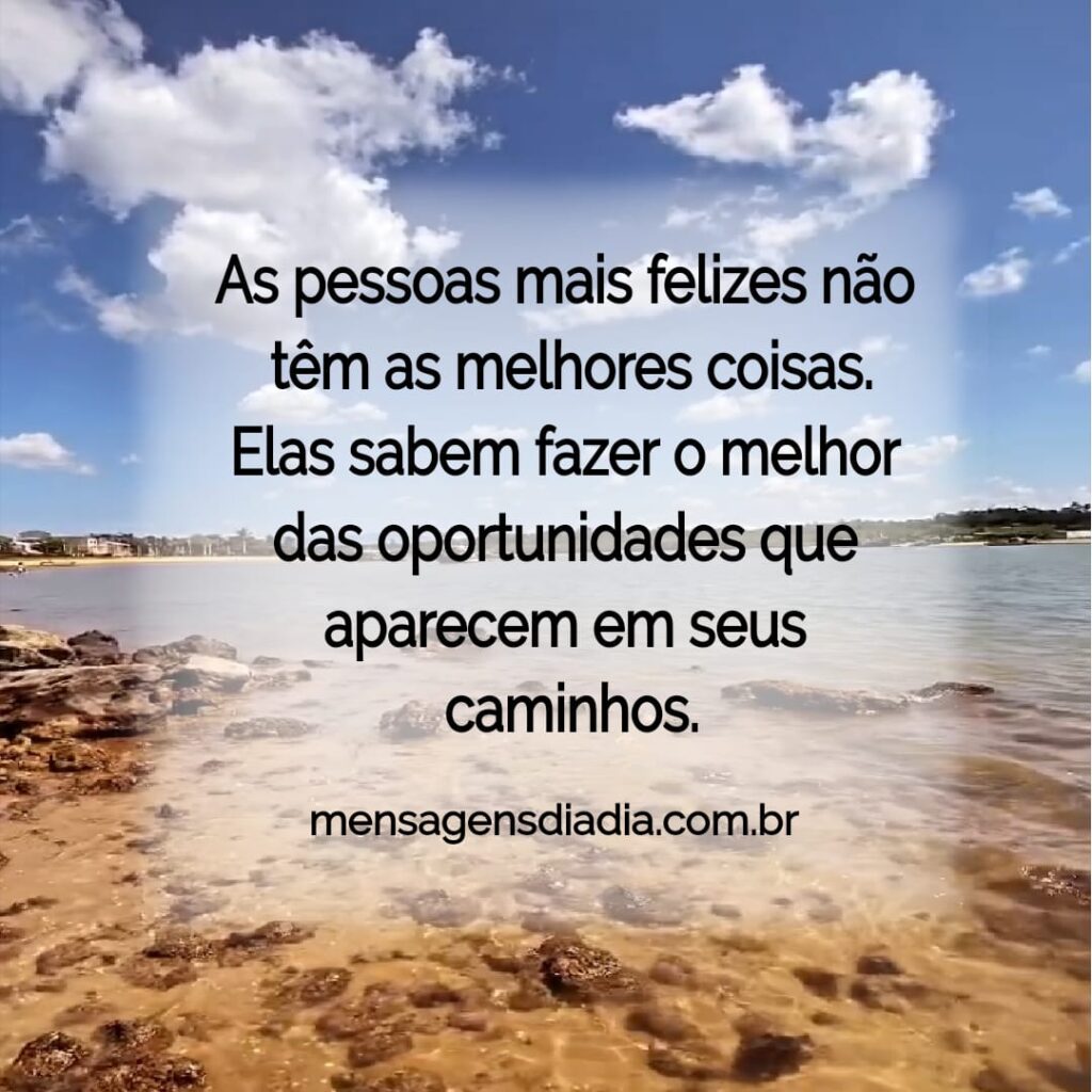 As pessoas mais felizes não têm as melhores coisas. Elas sabem fazer o melhor das oportunidades que aparecem em seus caminhos.