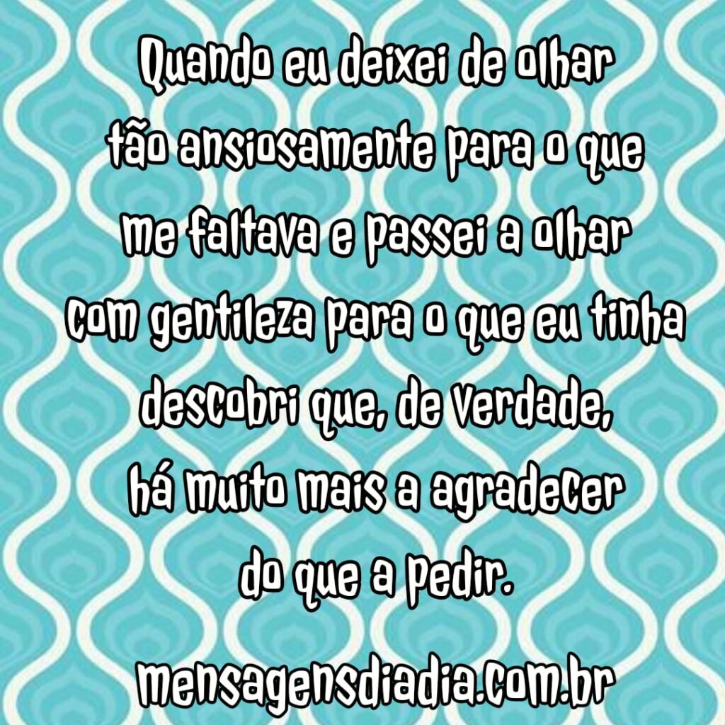 Quando eu deixei de olhar tão ansiosamente para o que me faltava e passei a olhar com gentileza para o que eu tinha descobri que, de verdade, há muito mais para agradecer do que a pedir.
