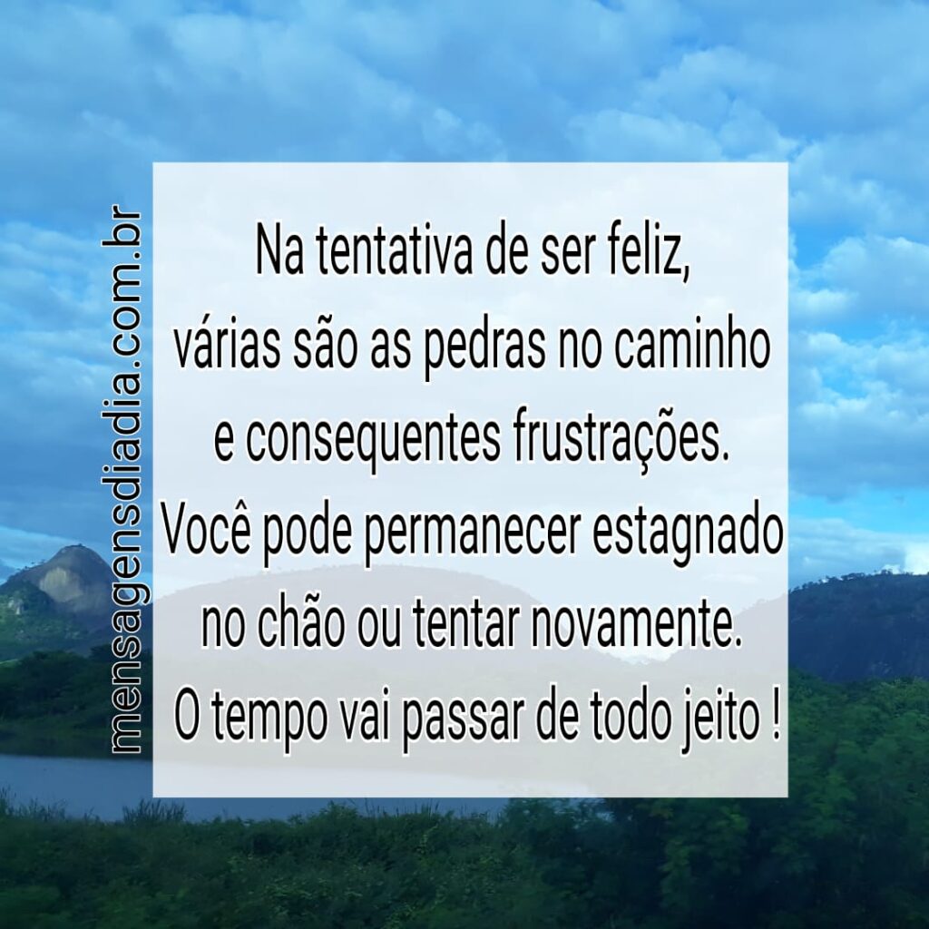 Na tentativa de ser feliz, várias são as pedras no caminho e consequente frustrações. Você pode permanecer estagnado no chão ou tentar novamente. O tempo vai passar de todo jeito!
