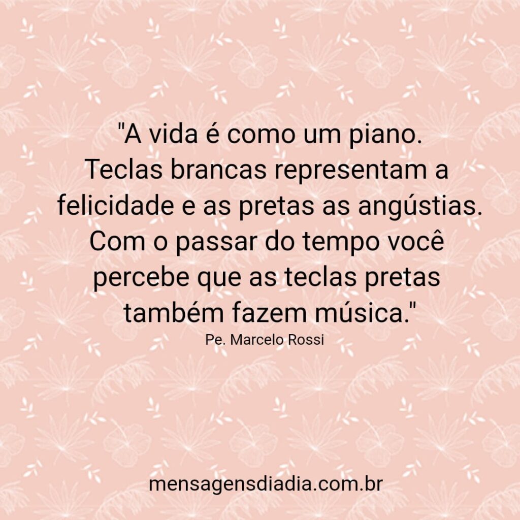 “A vida é como um piano. Teclas brancas representam a felicidade e as pretas as angústias. Com o passar do tempo você percebe que as teclas pretas também fazem música.” Pe Marcelo Rossi