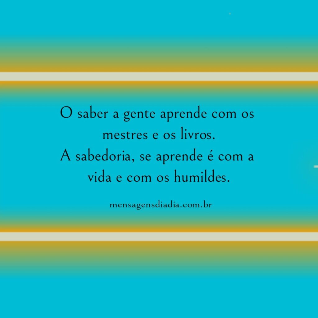 O saber a gente aprende com os mestres e os livros. A sabedoria, se aprende é com a vida e com os humildes
