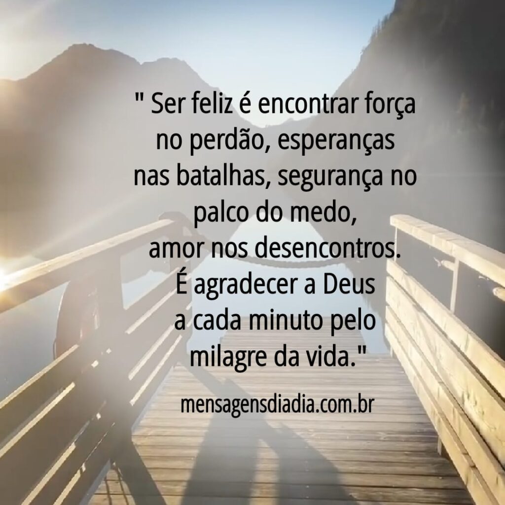 “Ser feliz é encontrar força no perdão, esperanças nas batalhas, segurança no palco do medo, amor nos desencontros. É agradecer a Deus a cada minuto pelo milagre da vida.”