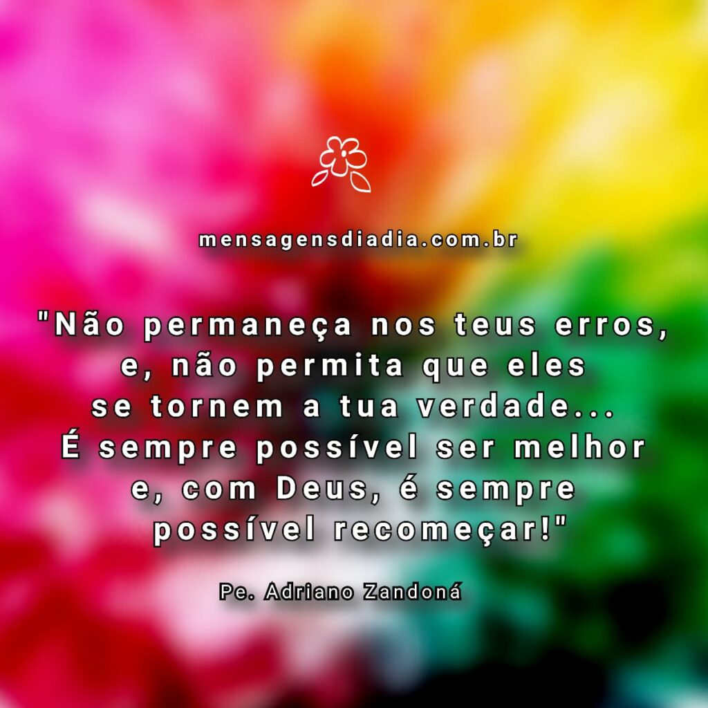 “Não permaneça nos teus erros, e, não permita que eles se tornem a tua verdade…. É sempre possível ser melhor e, com Deus, é sempre possível recomeçar!” Pe. Adriano Zandoná
