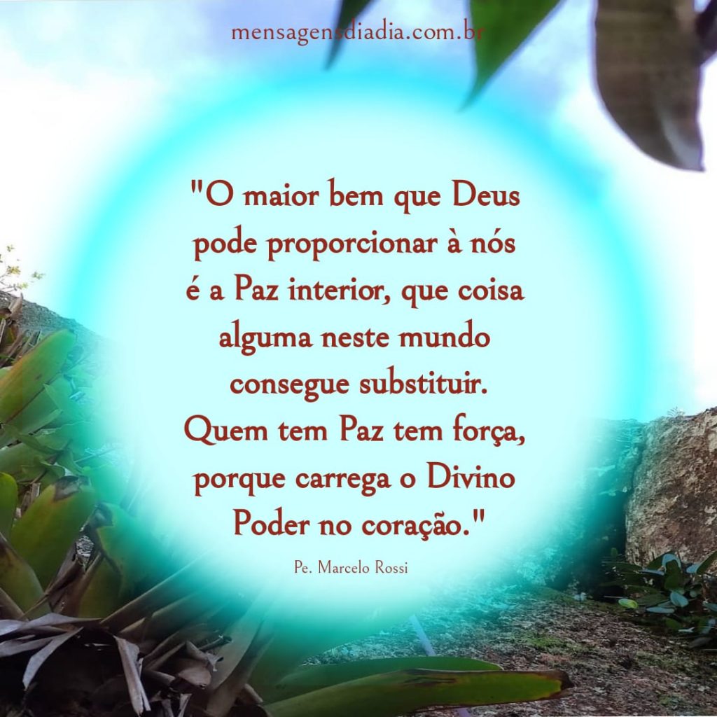 “O maior bem que Deus pode proporcionar à nós é a Paz interior, que coisa alguma neste mundo consegue substituir. Quem tem Paz tem força, porque carrega o Divino Poder no coração.”