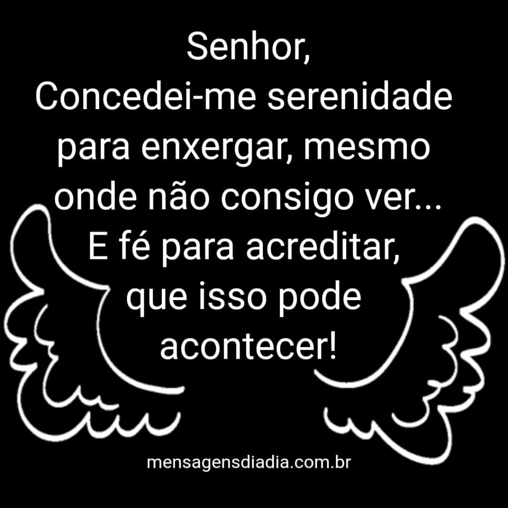 Senhor, concedei-me serenidade para enxergar, mesmo onde não consigo ver…. E fé para acreditar, que isso pode acontecer!