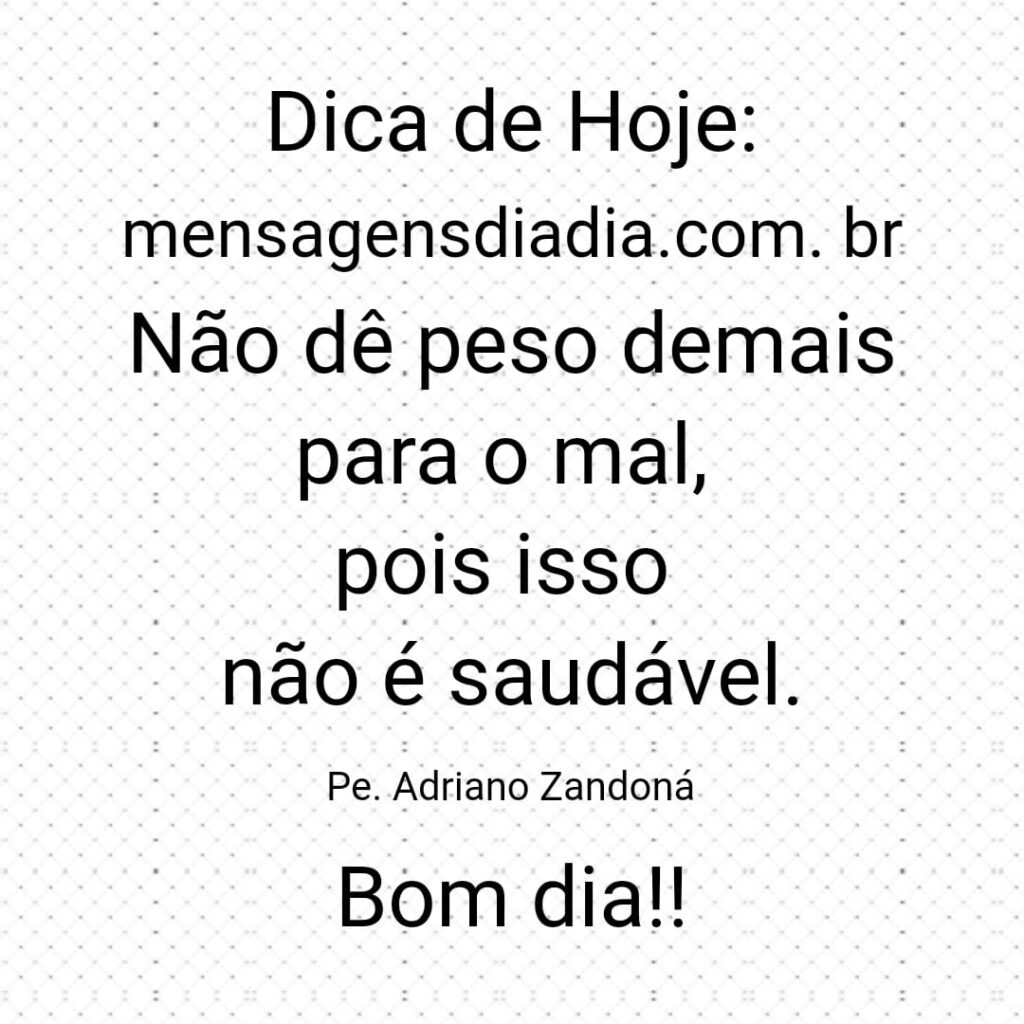 Dica de hoje: Não dê peso demais para o mal, pois isso não é