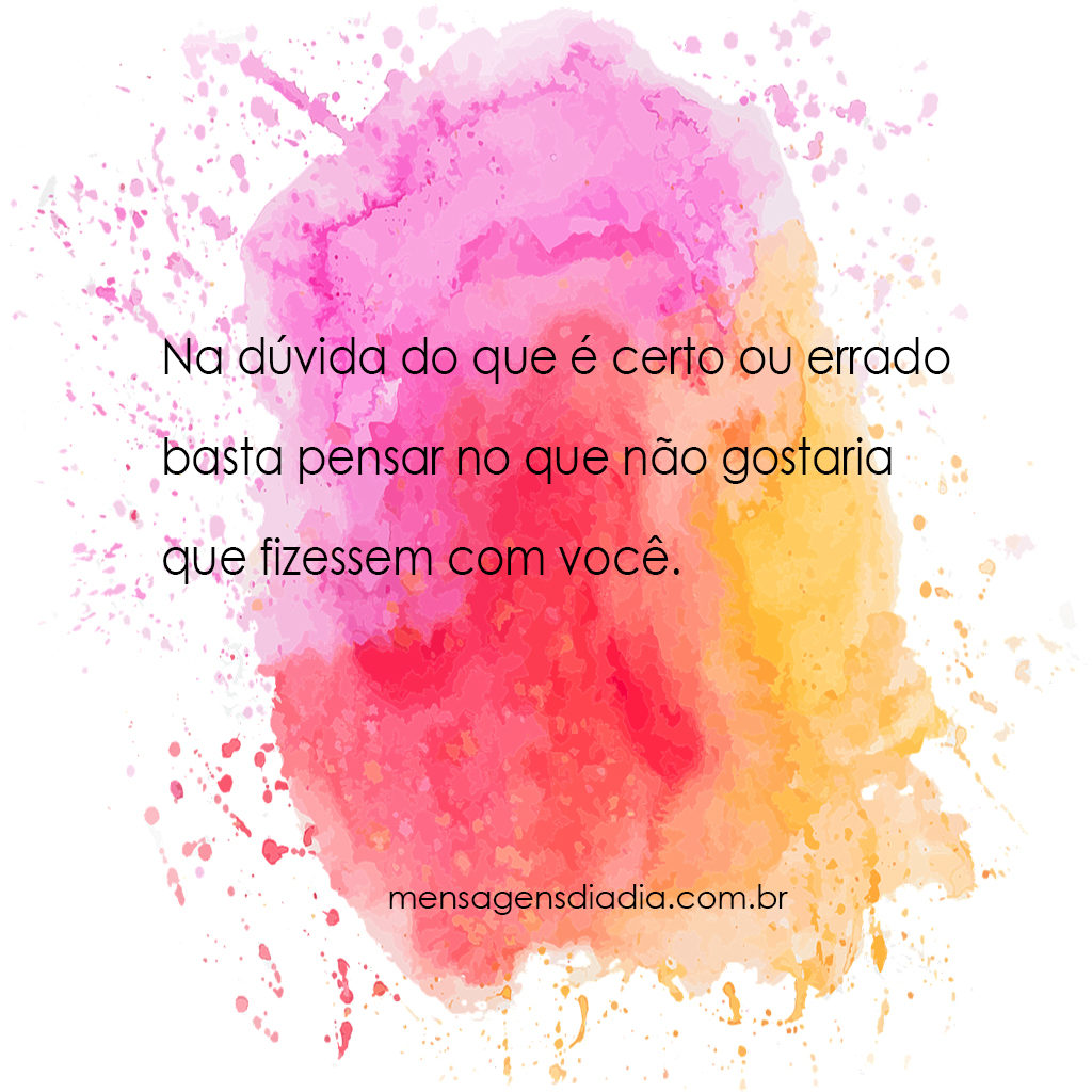 Na dúvida do que é certo ou errado basta pensar no que não gostaria que fizessem com você.