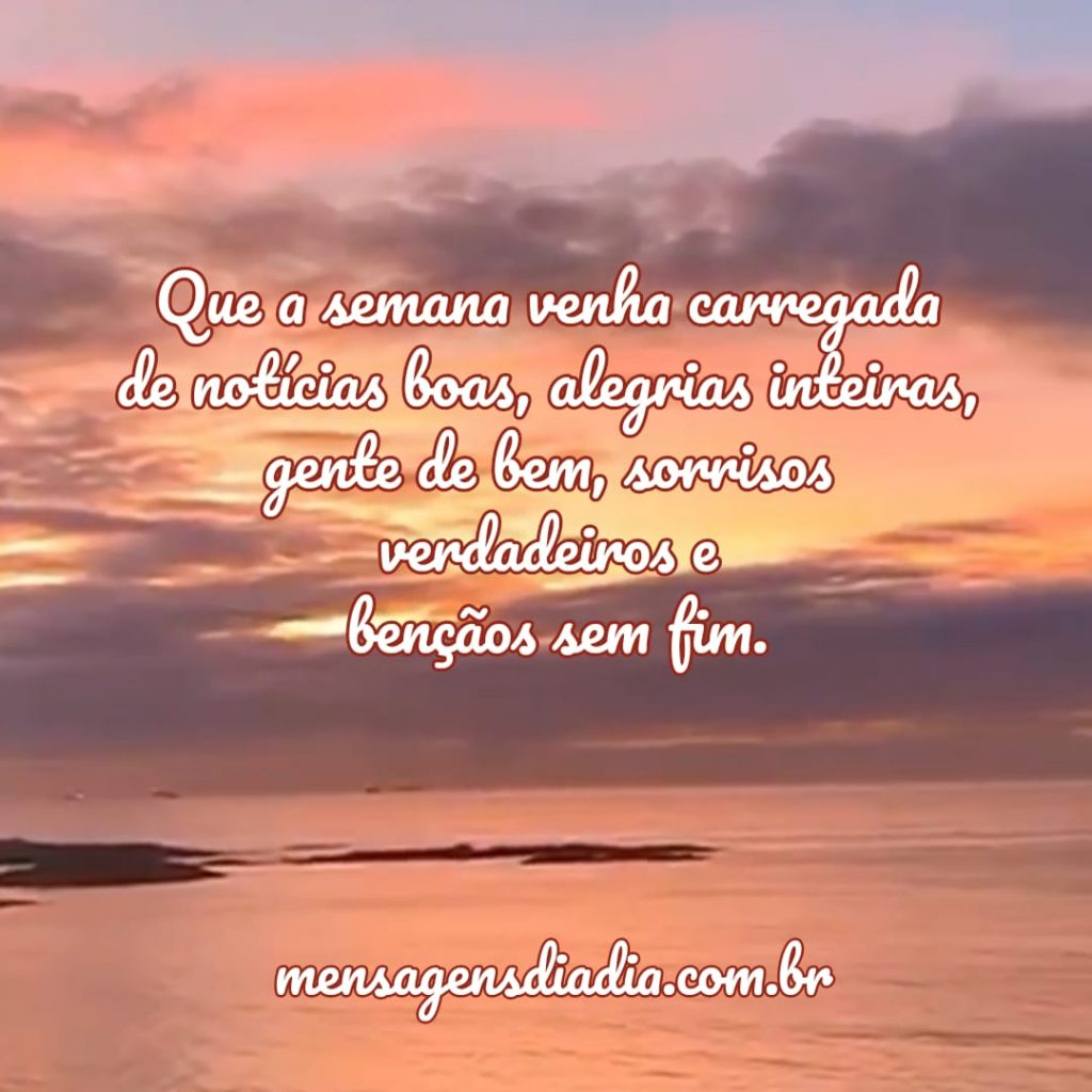 Que a semana venha carregada de notícias boas, alegrias inteiras, gente de bem, sorrisos verdadeiros e bençãos sem fim.