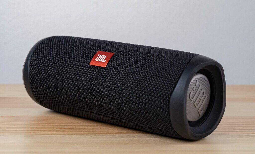 “Assinatura” JBL voltada a impacto e grave para uso externo e volumes mais altos, com proposta de festa/ambiente aberto.