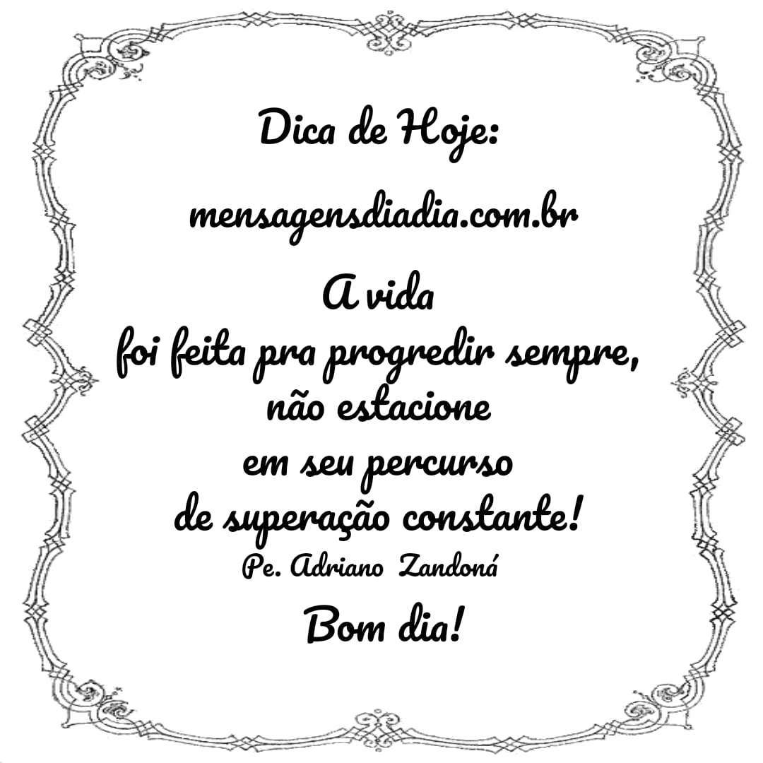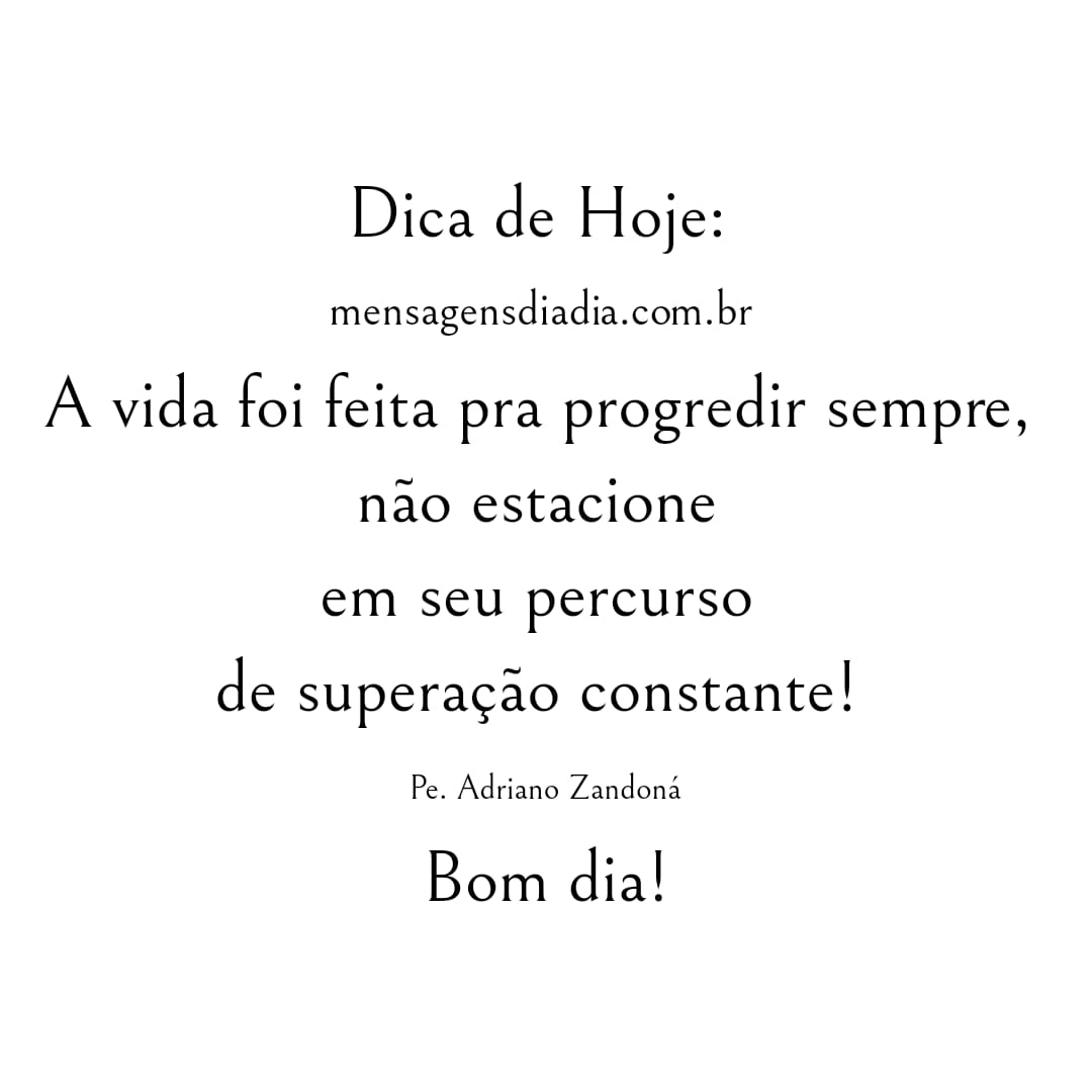 Dica de Hoje: A vida foi feita para progredir sempre, não estacione em seu percurso de superação constante. Bom Dia!