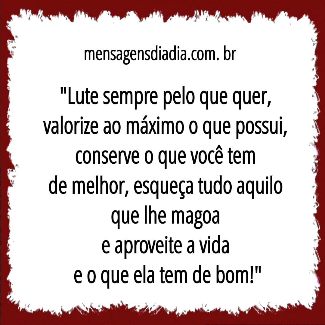 “Lute sempre pelo que quer, valorize ao máximo o que possui, conserve o que você tem de melhor, esqueça tudo aquilo que lhe magoa e