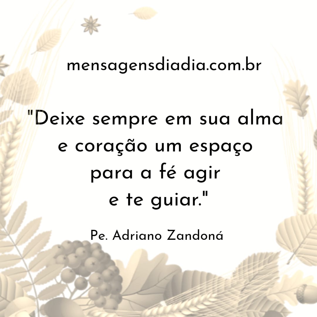 Deixe sempre em sua alma e coração um espaço para a fé agir e te guiar. Pe. Adriano Zandoná