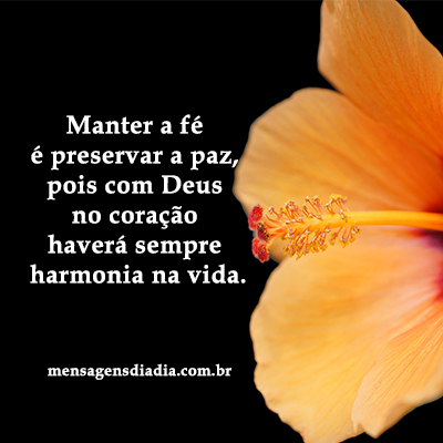 Manter a fé é preservar a paz, pois com Deus no coração haverá sempre harmonia na vida. Com Deus sempre!