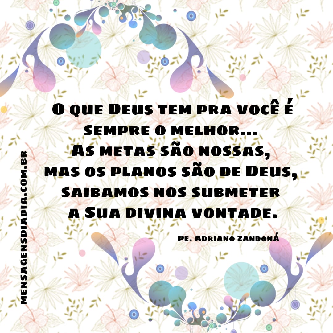 O que Deus tem pra você é sempre o melhor…as metas são nossas, mas os planos são de Deus, saibamos nos submeter a sua divina