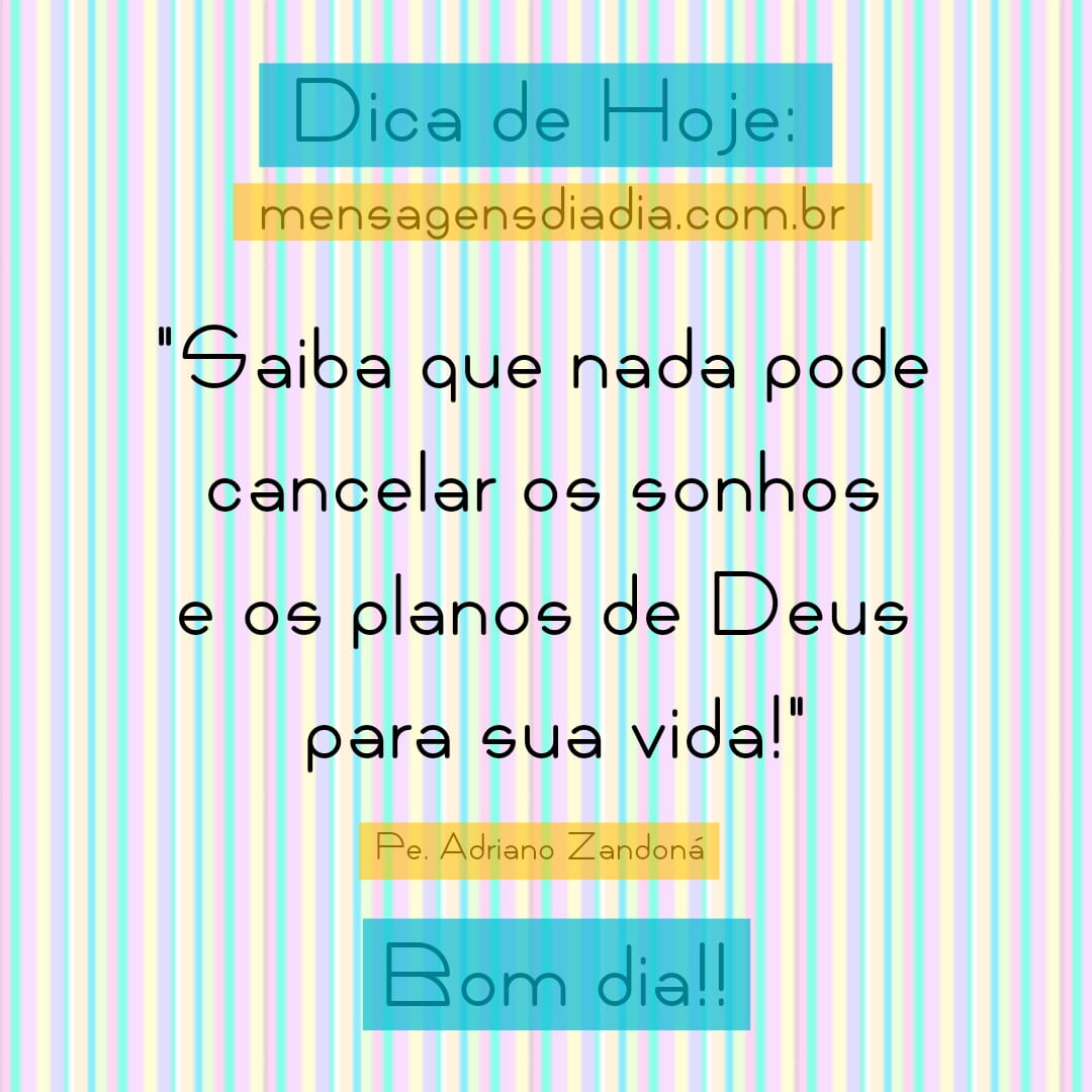 Dica de Hoje: “Saiba que nada pode cancelar os sonhos e os planos de Deus para sua vida!” Pe. Adriano Zandoná