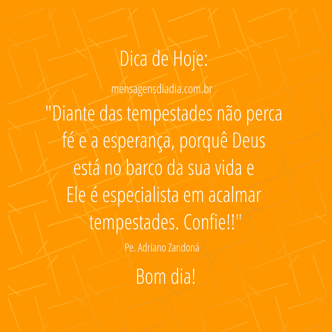 Dica de Hoje: “Diante das tempestades não perca fé e a esperança, porquê Deus está no barco da sua vida e Ele é especialista em