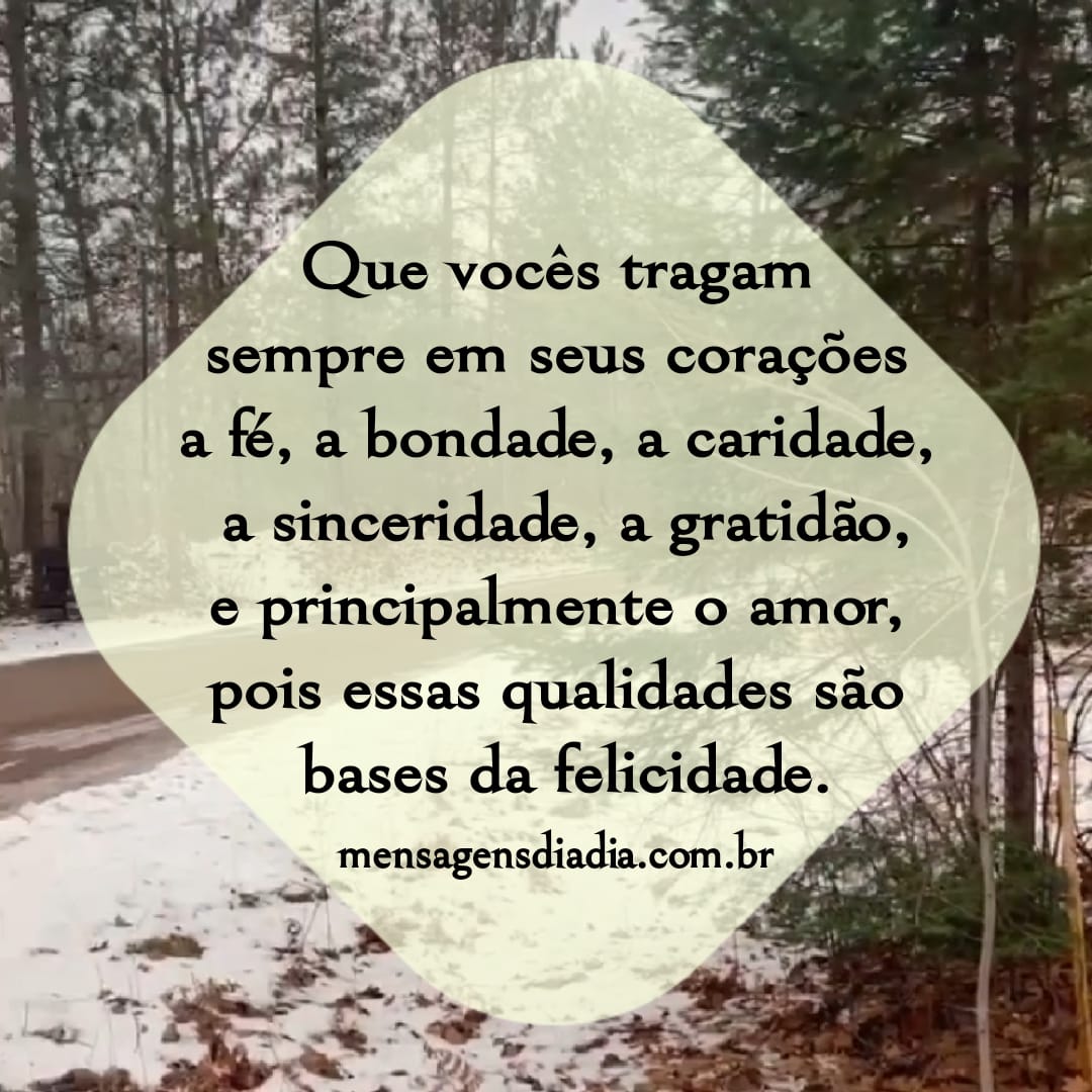Que vocês tragam em seus corações a fé, a bondade, a caridade, a sinceridade, a gratidão e principalmente o amor, pois essas qualidades são bases