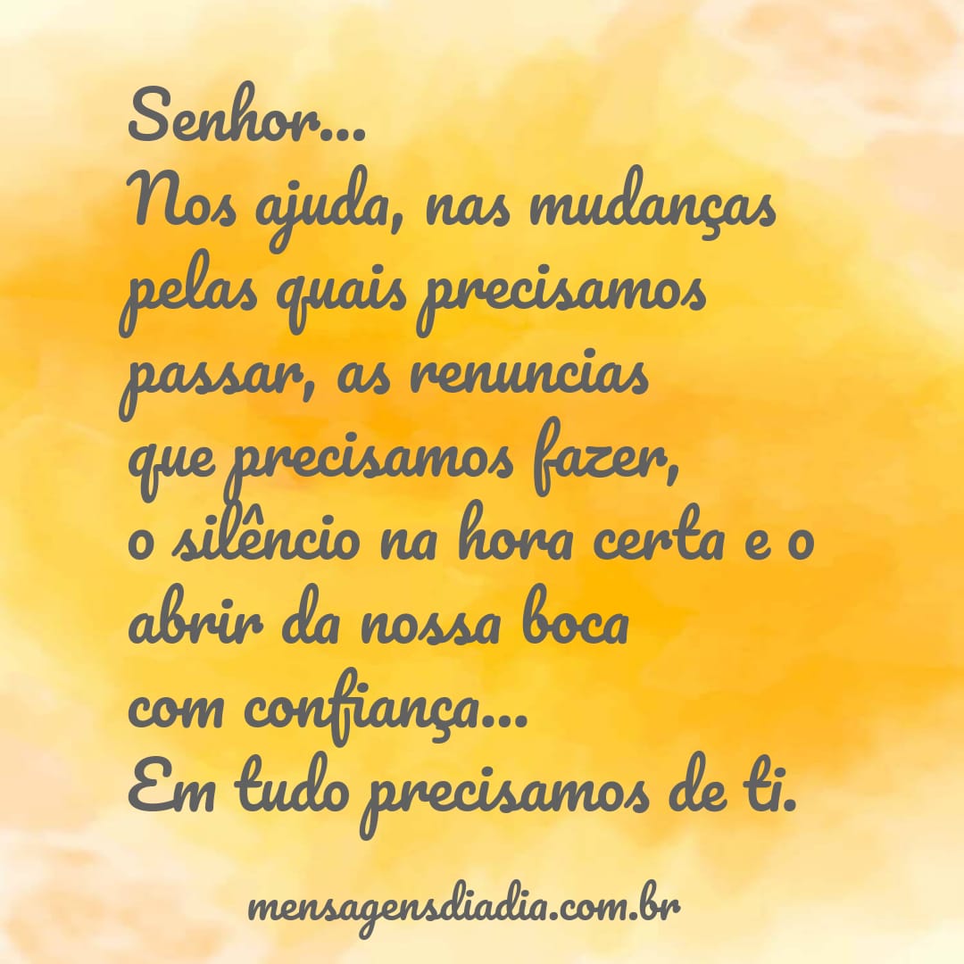 Senhor, Nos ajuda,nas mudanças pelas quais precisamos passar, as renuncias que precisamos fazer, o silêncio na hora certa e o abrir da nossa baca com