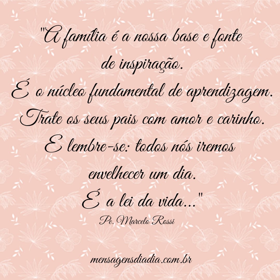 ” A família é nossa base e fonte de inspiração. É o núcleo fundamental de aprendizagem. Trate os seus pais com amor e carinho. E
